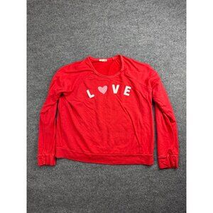 Sundry Sweatshirt Women's 3 Red Love Heart Pullover Crew Neck USA Made