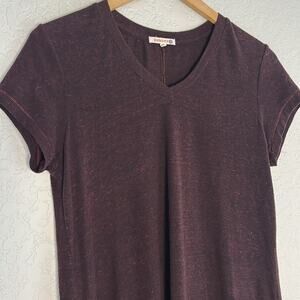 Sundry T-Shirt Dress Gold Seam Dark Purple Plum Soft V Neck Size 2 Medium Fall
