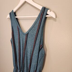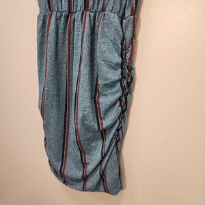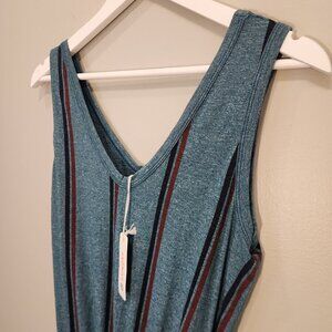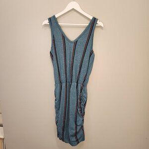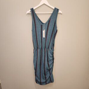 Sundry Tank Dress V-Neck Teal Stripes Ruched Skirt Casual Beach Lounge - Size 2