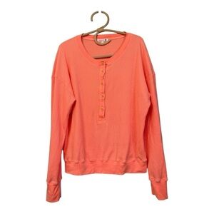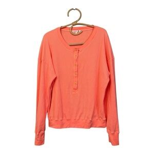 Sundry Thermal Henley in Neon Coral Long Sleeve Relaxed Size 2 Medium Made in US