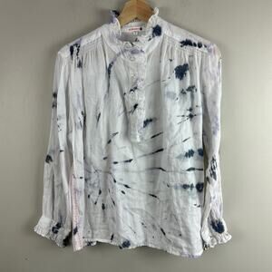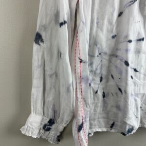 Sundry Tie Dye Ruffle Button Popover Top Shirt Blouse Tissue Crepe 0 XS Extra Small
