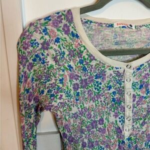 Pre owned excellent condition. Worn once. Really pretty floral patterned ribbed Henley top. Sundry size 1 = womens size small.