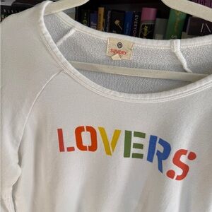 Sundry White Knit LOVERS rainbows graphic pullover long sleeve Top sweatshirt