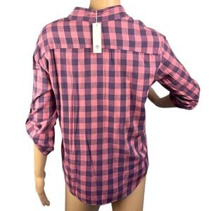 Sundry Women's 3/4 Button Shirt Brushed Cotton Plaid Pink Blue Size (M) Elevated