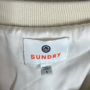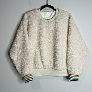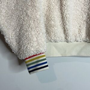 Sundry | Women’s Beige Sherpa Sweatshirt Rainbow Stripe Cuffs Size Small