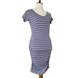 Sundry Women's Blue Stripes Short Sleeves V-Neck Dress Size S
