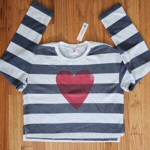 NWT Sundry by Anthropologie Cropped Crewneck Stripes & Heart Sweatshirt Size XS-- oversized can also fit a SM-M