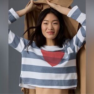 Sundry by Anthropology Cropped Crewneck Heart Striped Sweatshirt