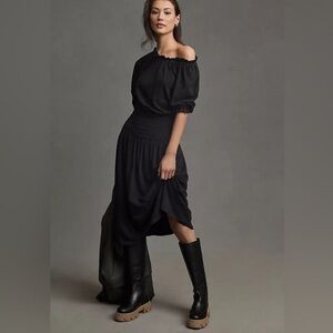 Sundry for Anthropologie Smocked Waist Midi Dress black. This dress is in great used condition and is a size 2 which is equal to a size medium