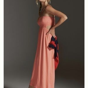 Sundry for Anthropologie Strapless Cutout Midi Dress/Swim coverup. Perfect for the beach or a day out. comfortable and flattering stretchy smocked top. Retails for $228.