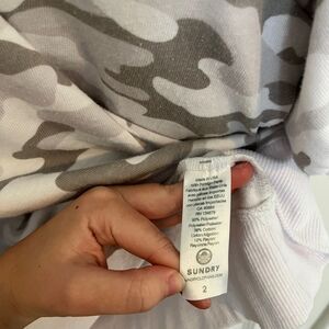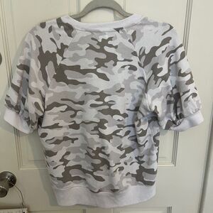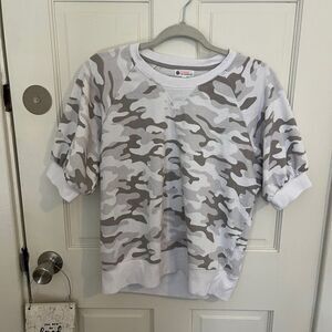 Sundry for Evereve White and Grey Camo Short Sleeve Crewneck Sweatshirt Size 2