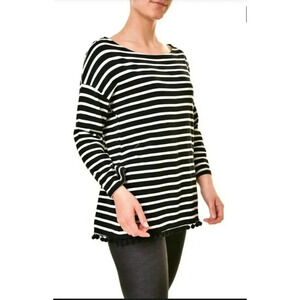 Sundry size US 1 Maritime Striped Black Lips 3/4 Sleeve Pullover pompom Women’s