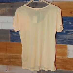 Sundry t-shirt in a size 2. It is NWT. This t-shirt is a v-neck with a rolled collar. The color is a yellowish-orange. Made in the USA. So soft and well-made!
