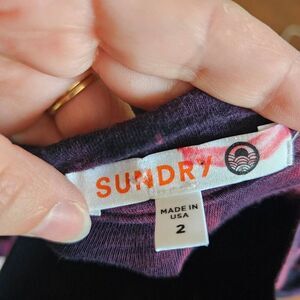 This is a pink and purple sleeveless Tie dye dress by Sundry. It features a side Tie detail as shown in the photos.