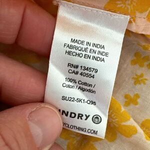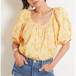 Sundry puff sleeve floral blouse size 1 (small). Beautiful light material in a peach color with yellow flowers and shiny buttons.
