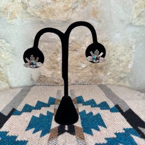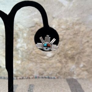 Sunface Earrings Native American Zuni Inlay and Sterling Silver. Pair of post earrings