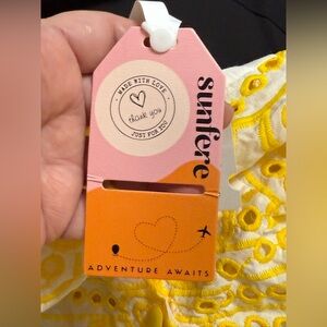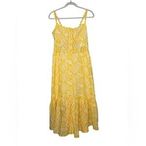 Sunfere Sunny Yellow Eyelet Spaghetti Straps Dress Resortwear Travel M