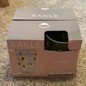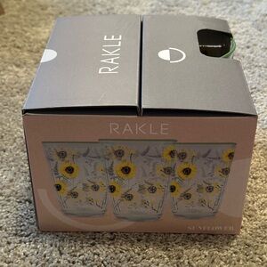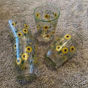 Charming glass tumblers with sunflower design. Perfect for brightening up any table setting.