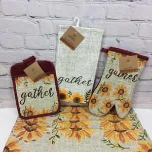 Sunflower 7Pc Kitchen Set (4)Tapestry Placemats/Dish Towel/Oven Mitt/Pot Holder