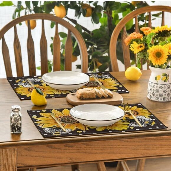 Sunflower & Bee Dining Placemats - Black and Yellow