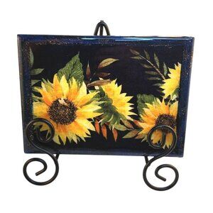 Sunflower & Beehive Resin Tile Trivet Coaster Set With Vibrant Blue & Yellow Des