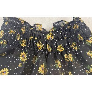 Ideal for work or formal occasions, this new with tags floral blouse offers a blend of style and sophistication. Its sheer fabric, ruffled neck, and elegant long smocked sleeves contribute to a polished look while ensuring comfort and breathability.
