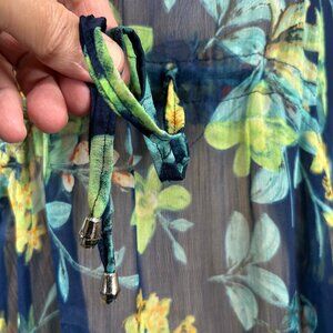 Sunflower Blue Floral Chiffon Sheer Kaftan Swim Cover-Up Size OS