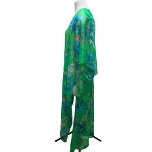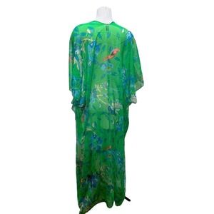 Sunflower Brand Swimwear Sheer Cover Up O/S Maxi Open Kimono Birds Floral Green