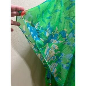 Sunflower Brand Swimwear Sheer Cover Up O/S Maxi Open Kimono Birds Floral Green.