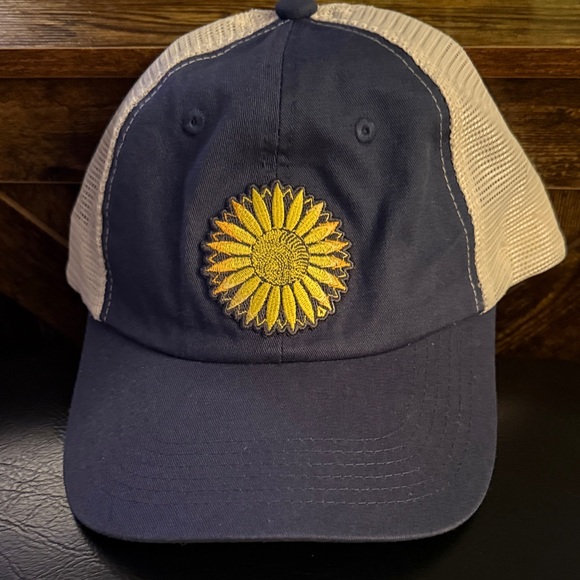 Stylish navy blue cap with a vibrant yellow sunflower design. Perfect for casual outings.