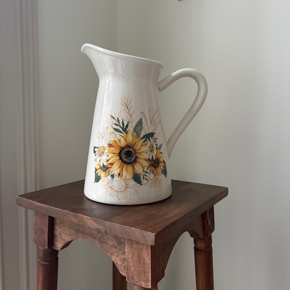 Elegant ceramic pitcher featuring vibrant sunflower design. Perfect for adding a touch of nature to your home decor.