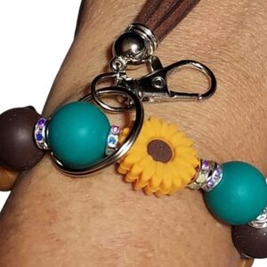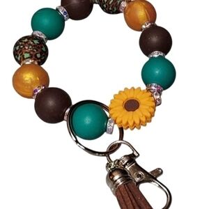 Brighten your look with this charming sunflower bracelet. Featuring vibrant teal, gold, and brown leopard print beads, it's a perfect accessory for any occasion!