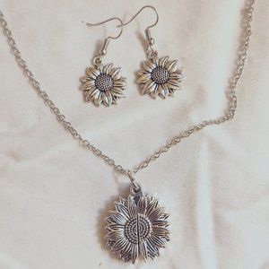 Sunflower Charm Stainless Steel Pendant Locket Necklace and Earring Set NEW