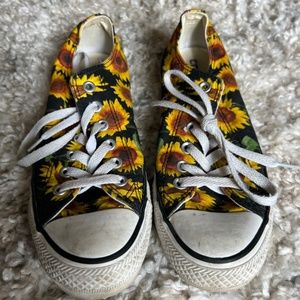 Bright and cheerful sunflower Converse. Loved but still in great condition. No major tears or stains. Run a bit big.