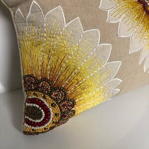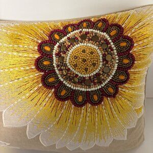 Sunflower Decorative Pillow Beaded Embroidered Beige Zipper Closure 13"x19" Boho