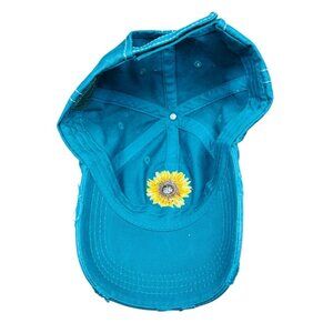 Sunflower Distressed Teal Cap Hat Adjustable Outdoors Hiking Jeep Beach