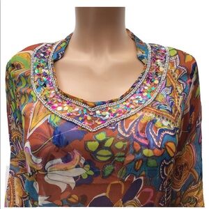 Sunflower Floral Sequin Neckline Long Sleeve Sheer Swimsuit Cover Up Size Small. Brand new with tag. From smoke free home.