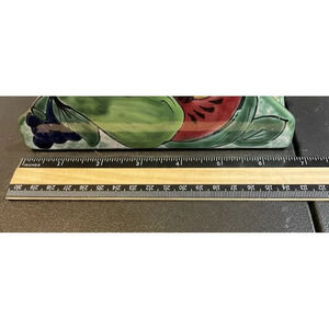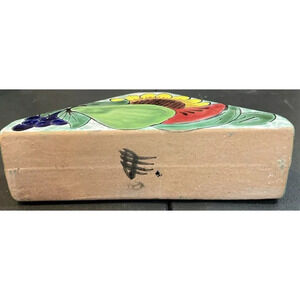 Sunflower Fruit Pear Colorful Napkin Holder Hand Painted Pottery Retro Kitchen