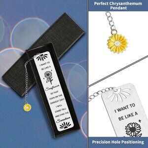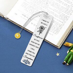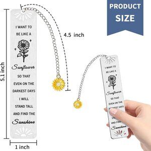 Sunflower Gifts Metal bookmark with sunflower chain and inspirational words: "I want to be like a sunflower so that even on the darkest days, I will stand tall and find the sunshine." Best Gift for your children sister families best friend coworkers students.