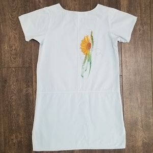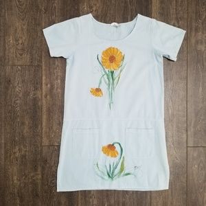 Gorgeous handpainted sunflower dress. The dress is a soft powdered blue color.