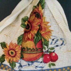 This is a Hanging Sunflower Kitchen Tea Towel that can also be used as a light Potholder.