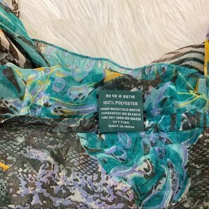 SUNFLOWER Multi-Color Tropical Print Half Sleeve Sheer Caftan Tunic Dress Cover Up Women's One Size Fits All