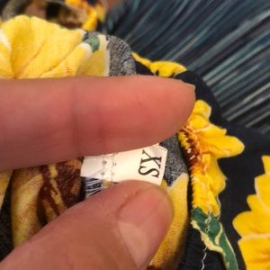 Adorable sunflower onsie! The off the shoulder detail with ruffle sleeves is so cute!!! Two clasp closure at bottom for easy diaper changes. Size says xs but I put 3-6 months. My daughter wore it at 4 months