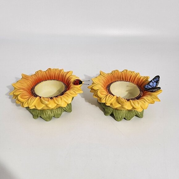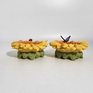 Sunflower Shaped Ceramic Candle Holders With Ladybug Butterfly Accents Partylite