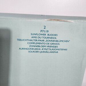 This pair of sunflower candle holders evokes a vintage charm. Featuring delicate hand-painted details, each piece includes a whimsical insect accent—a ladybug on one and a butterfly on the other. Ideal for adding warmth and a touch of nostalgia to your home decor.