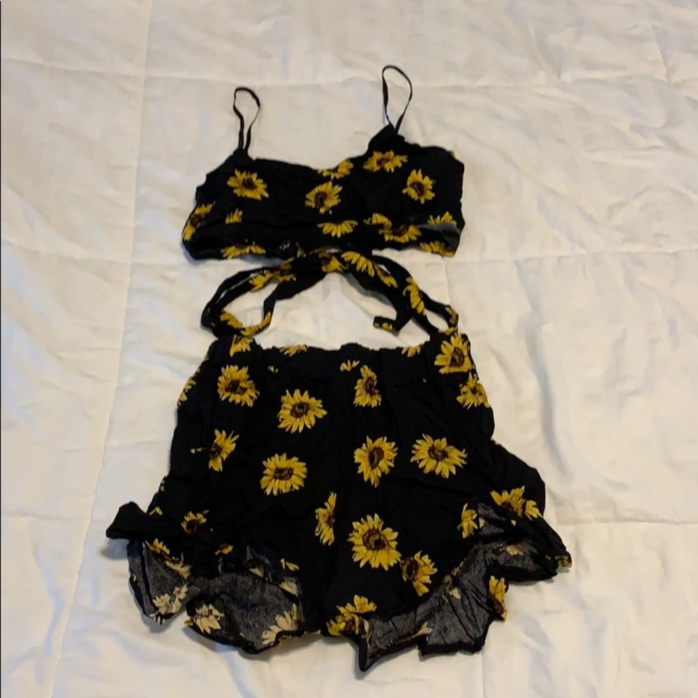 Super cute and comfy set! Top is super versatile with the ties! Only worn once!