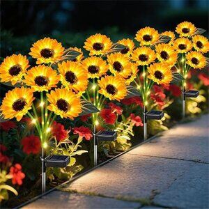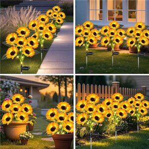 【Weatherproof & Durable】Each solar sunflower light is made with fade-resistant flower heads, sturdy metal stems, and reinforced ABS light poles. With IP65 waterproof protection, these solar lights outdoor waterproof withstand rain, wind, snow, and sun, perfect for garden decor for outside