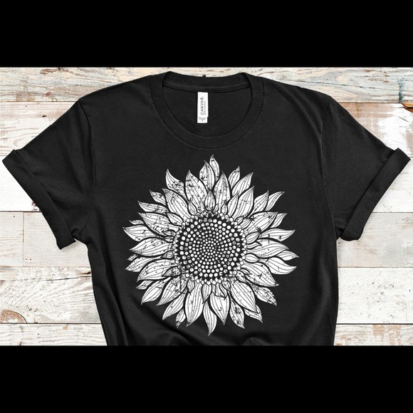 Sunflower T-shirt. 100% cotton unisex tee. Red, black, gray, orange, green, gold, royal blue, purple, navy blue, fuchsia and hot pink tees are available. Tees are made upon order.
