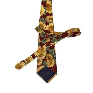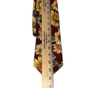 Sunflower vintage neck tie with maroon background. About 55 inch long and 4 inch wide at bottom