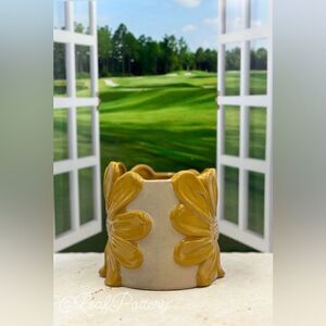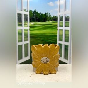 Sunflower Bloom Mustard Yellow/Tan Ceramic Planter Pot